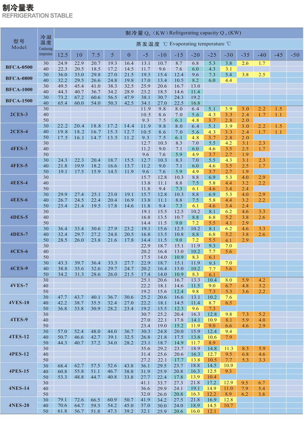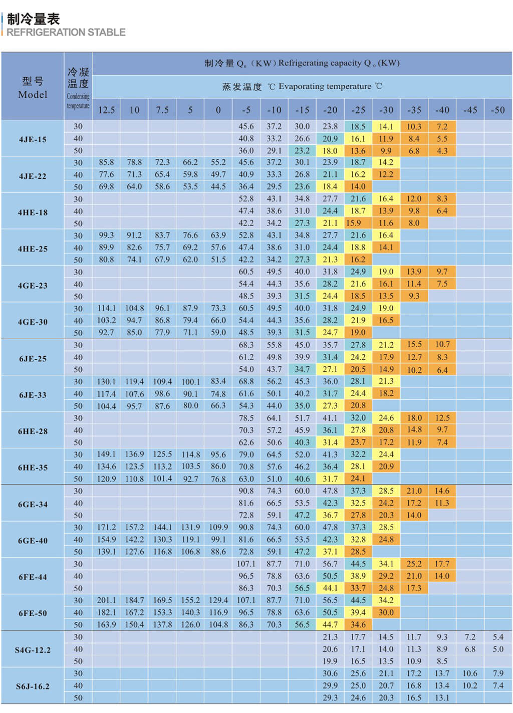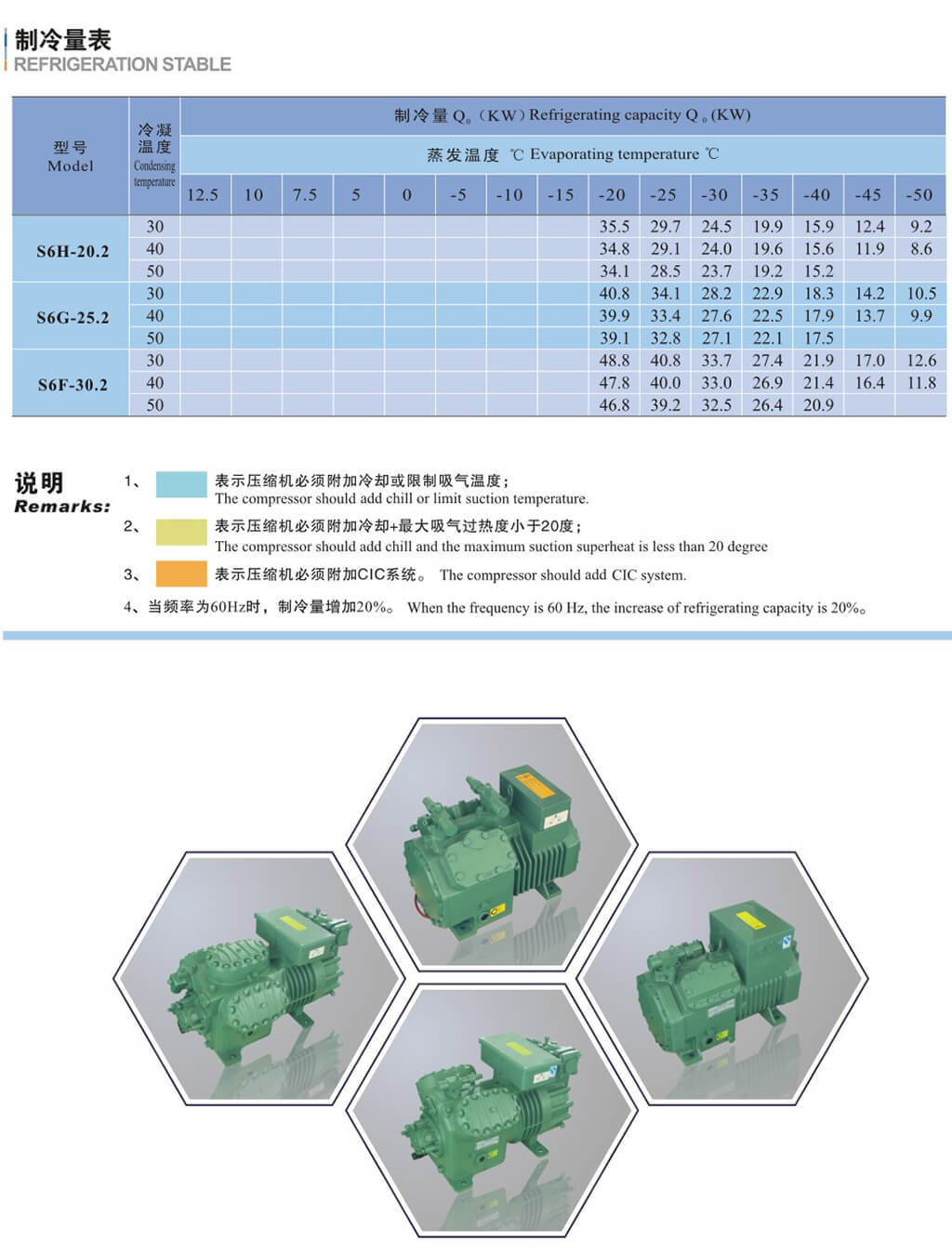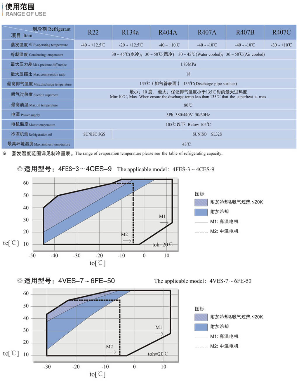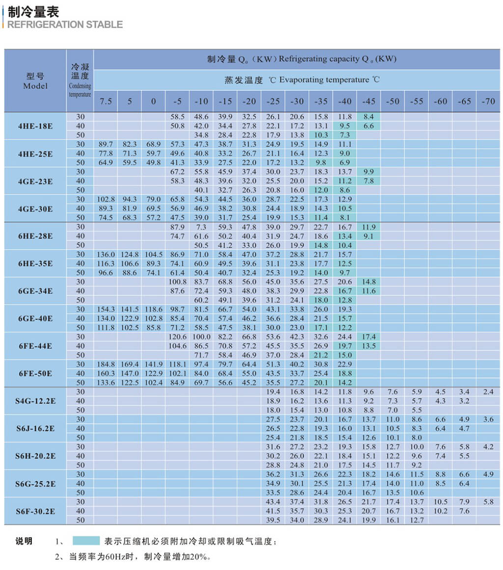 基于吸气温度20C,液体没有过冷,电机转速=1450转/分( 50Hz )
